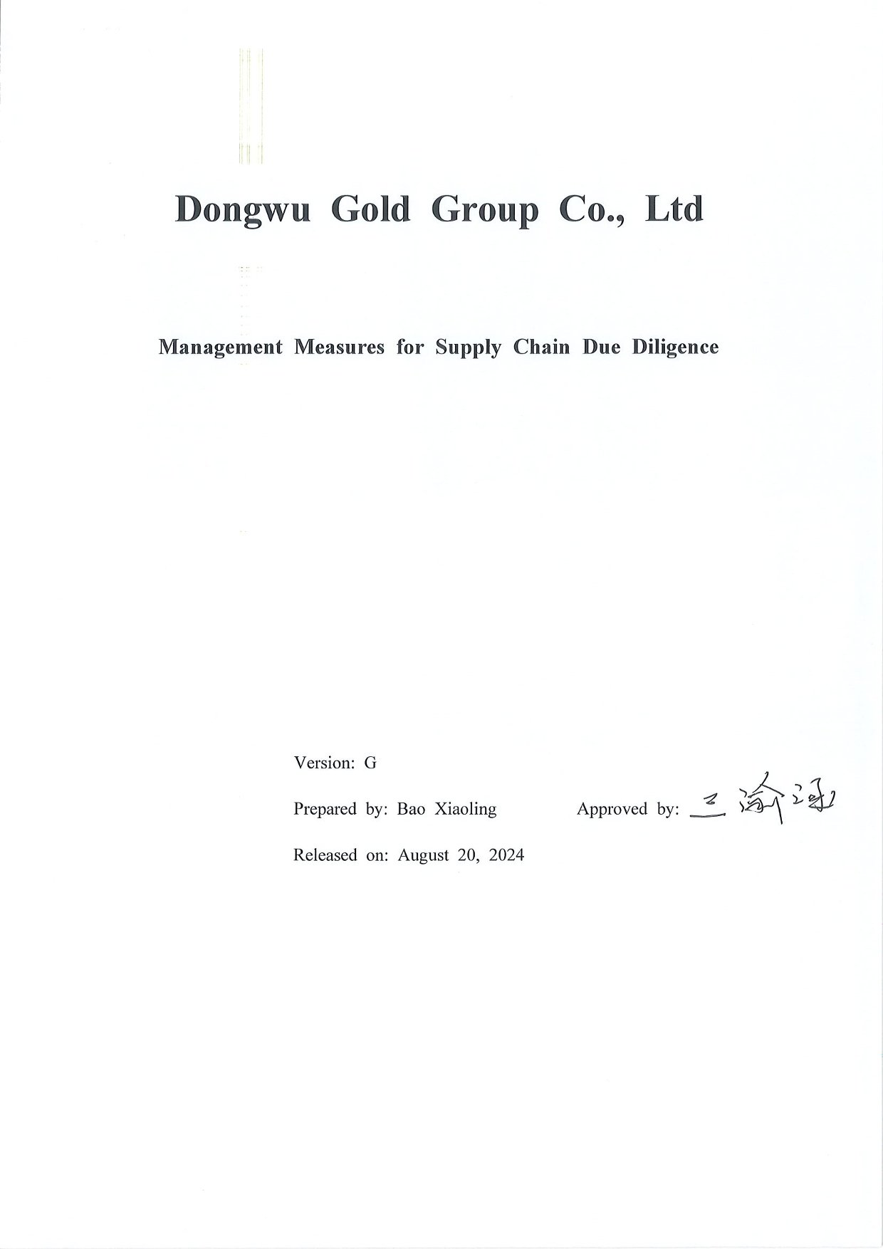 Management Measures for Supply Chain Due Diligence Dongwu Gold Group Co., Ltd(Version: G)